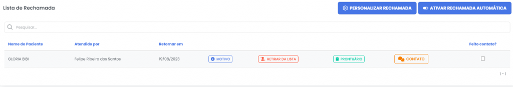 Será apresentado uma tela com todas as rechamadas de pacientes.