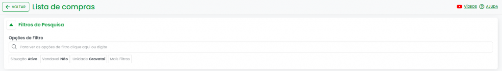 - Situação: Filtre por itens Ativo ou inativo, nome do item.