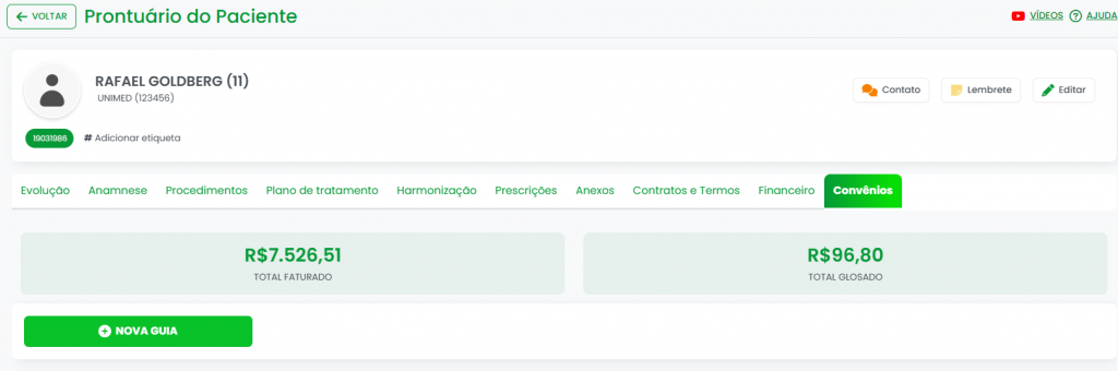 - Convênio: O convênio do paciente já estará preenchido automaticamente, mas é importante verificar se a informação está correta.