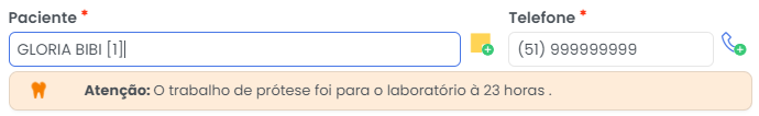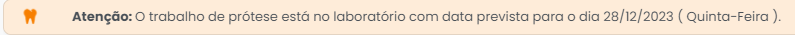 - No prontuário do Paciente, caso ele possua algum trabalho de prótese, um alerta aparecerá.