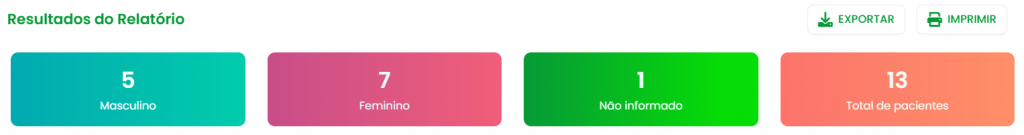 - Total de pacientes: Mostra a quantidade total de pacientes na sua base de dados, considerando os filtros aplicados.