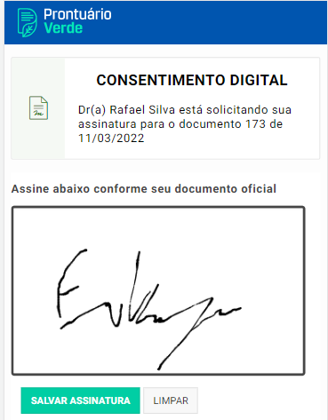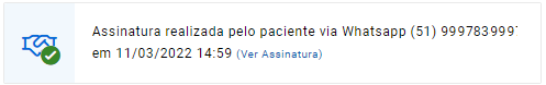 Após o paciente assinar será apresentado a tarja abaixo sobre o termo, permitindo visualizar a assinatura do mesmo, além disso, o documento do termo já conterá a assinatura do paciente.