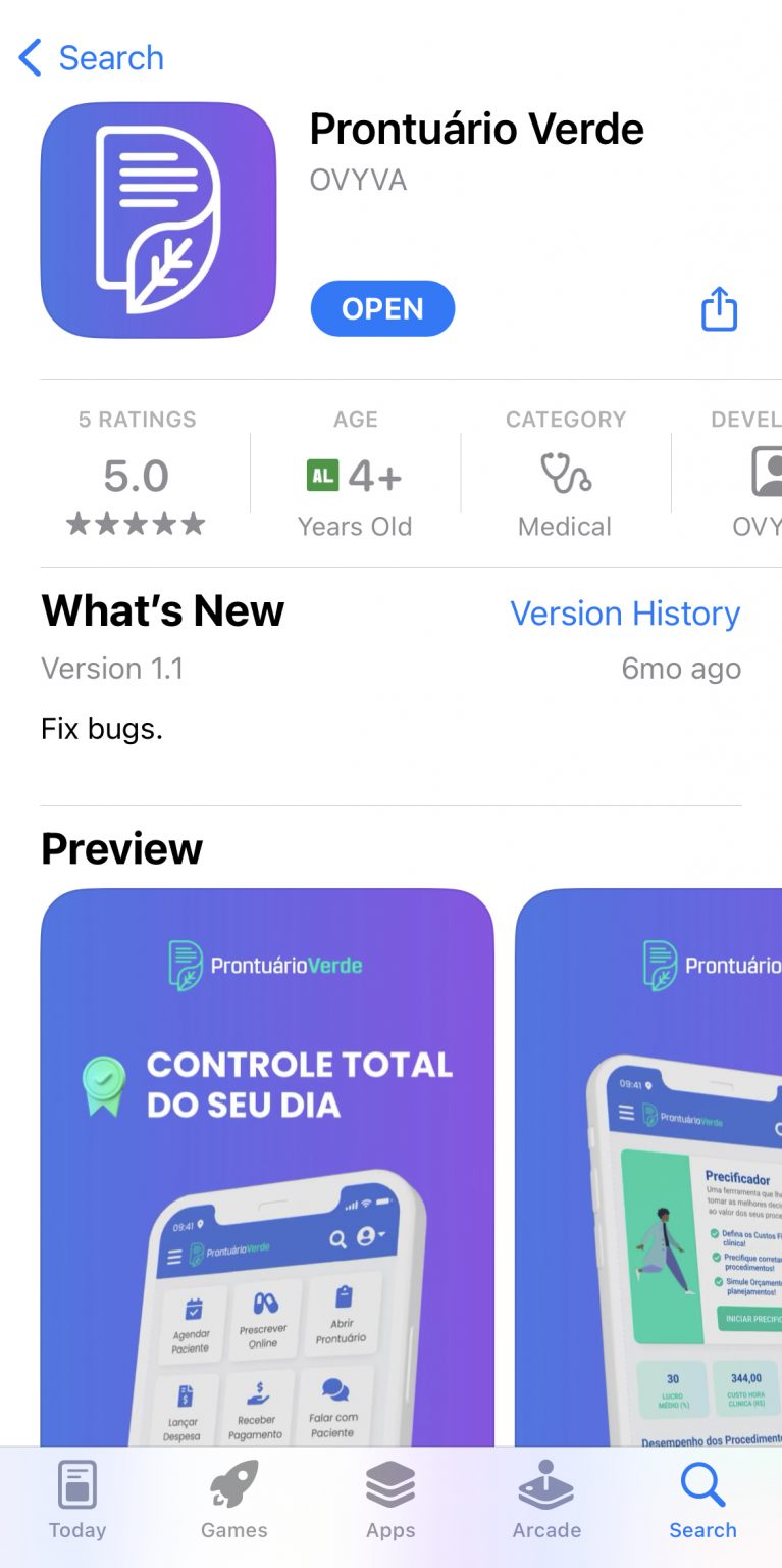 - Ou, se preferir, clique no link abaixo para ser direcionado automaticamente para a página de download: https://apps.apple.com/app/prontu%C3%A1rio-verde/id6444843023.