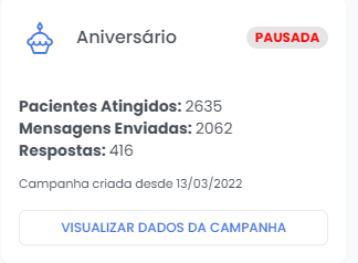 - Sobre o CARD da campanha de Aniversário clique no botão “Criar Campanha”.