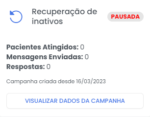 - Sobre o CARD da campanha de Recuperação de inativos clique no botão “Criar Campanha”.