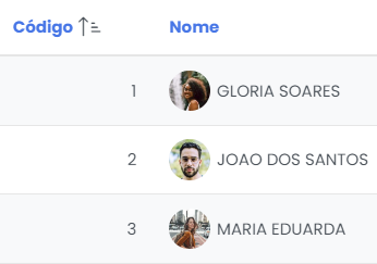 A listagem de pacientes pode ser ordenada a partir dos campos Código e Nome.