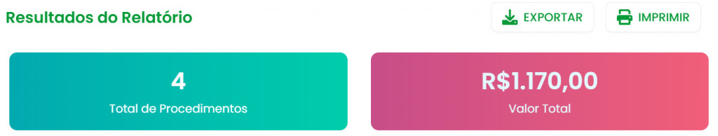 - Valor Total: Mostra o valor monetário total de todos os procedimentos iniciados e não finalizados no relatório.