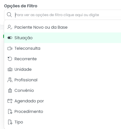 - Número do Prontuário: Filtrar agendamentos de pacientes com um ID de prontuário específico.