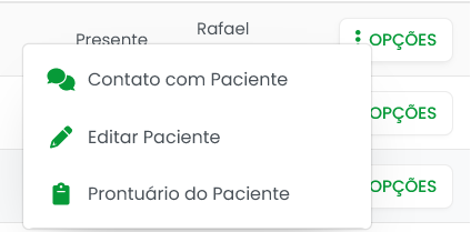 - Contato com Paciente: Abrirá uma janela para entrar em contato via WhatsApp ou ligação por um aplicativo externo.