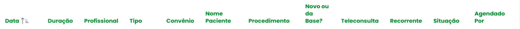 - Duração: O tempo estimado para cada procedimento ou consulta, auxiliando no planejamento da agenda.
