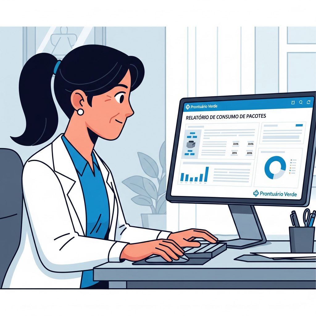 O relatório Consumo de Pacotes fornece uma visão detalhada sobre os pacotes de serviços adquiridos pelos pacientes, sua situação de uso e validade, organizado de forma clara e objetiva.