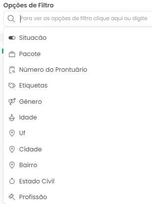 - Etiquetas: Filtra por etiquetas associadas aos pacientes.