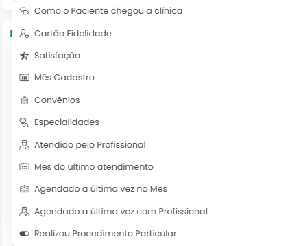- Mês do último atendimento: Filtra pelo mês do último atendimento do paciente.