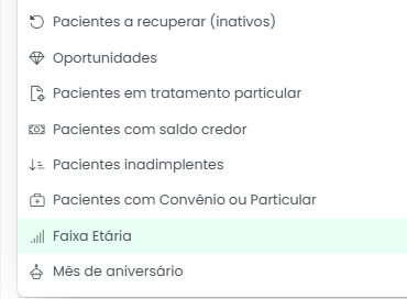 - Oportunidades: Filtra por pacientes com oportunidades abertas.