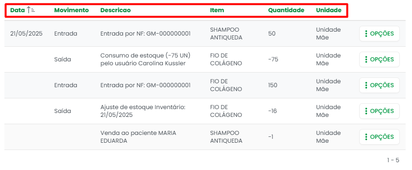 - Unidade: A unidade da clínica onde a movimentação ocorreu.