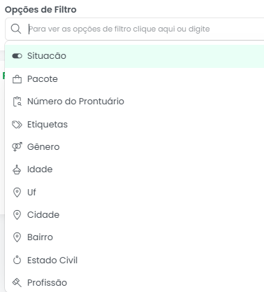 - Convênios: Filtra pacientes que possuem um convênio ou plano de saúde específico.