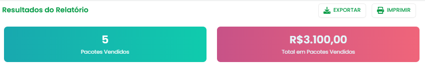 Este relatório pode ser acessado pelo caminho: Relatórios > Financeiro > Pacotes Vendidos.