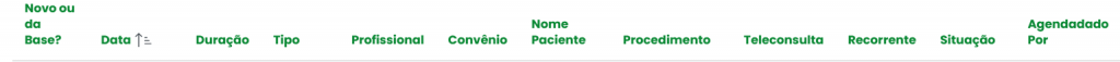 - Tipo: Categoriza o agendamento (por exemplo, “Consulta”, “Retorno”, “Avaliação”), oferecendo uma visão imediata sobre a natureza do atendimento.