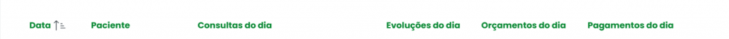 - Orçamentos do dia: Exibe o número do orçamento e o valor total orçado no dia para aquele paciente.